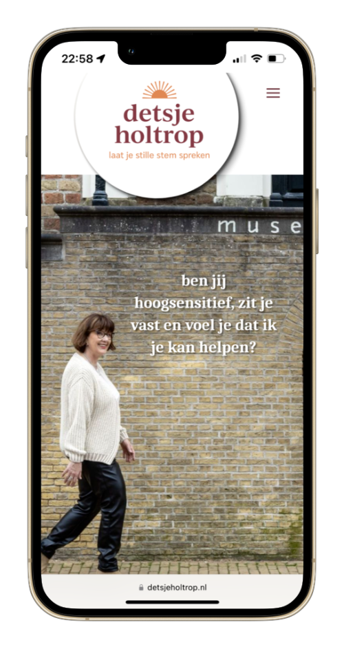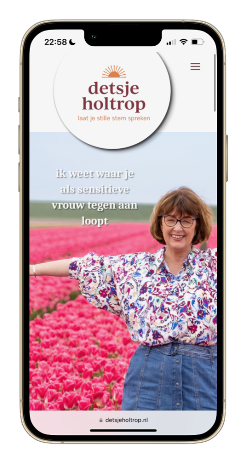 Ze is 68 jaar en heeft al ruim 30 jaar ervaring in de zorg. De helft in loondienst en de helft vanuit haar eigen bedrijf. En ze denkt er nog lang niet over om te stoppen. Sterker, ze wil nog meer mensen helpen. Daarom neemt ze na 4 jaar oriënteren de stap en wil ze naast offline nu ook online mensen helpen. Dat doet ze met haar nieuwe bedrijf Detsje Holtrop, van waaruit ze hooggevoelige 30+ vrouwen gaat coachen. En daar had ze een website voor nodig. En die mocht ik maken!